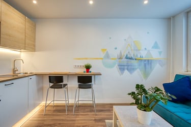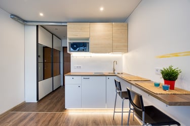 Parduotas funkcionaliai perplanuotas butas, paverstas dviem moderniomis studijomis