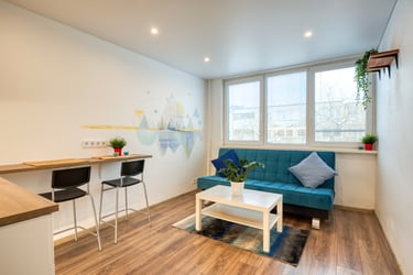 – Bendras plotas – 33,84 kv.m., perplanuotas į dvi studijas (16.28 kv.m. ir 17.48 kv.m. );