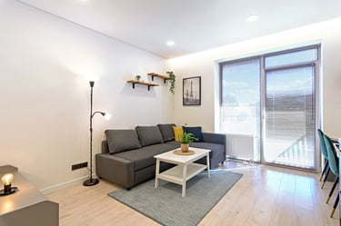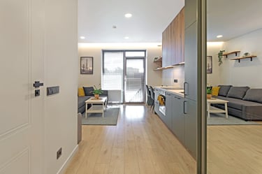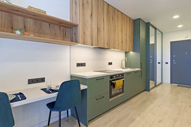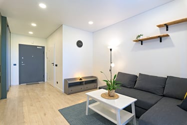 – Stilingos vidaus durys puikiai dera prie bendro interjero, LED apšvietimas virtuvėje, vonioje bei akcentinėse buto vietose suteikia erdvei jaukumo ir modernumo.